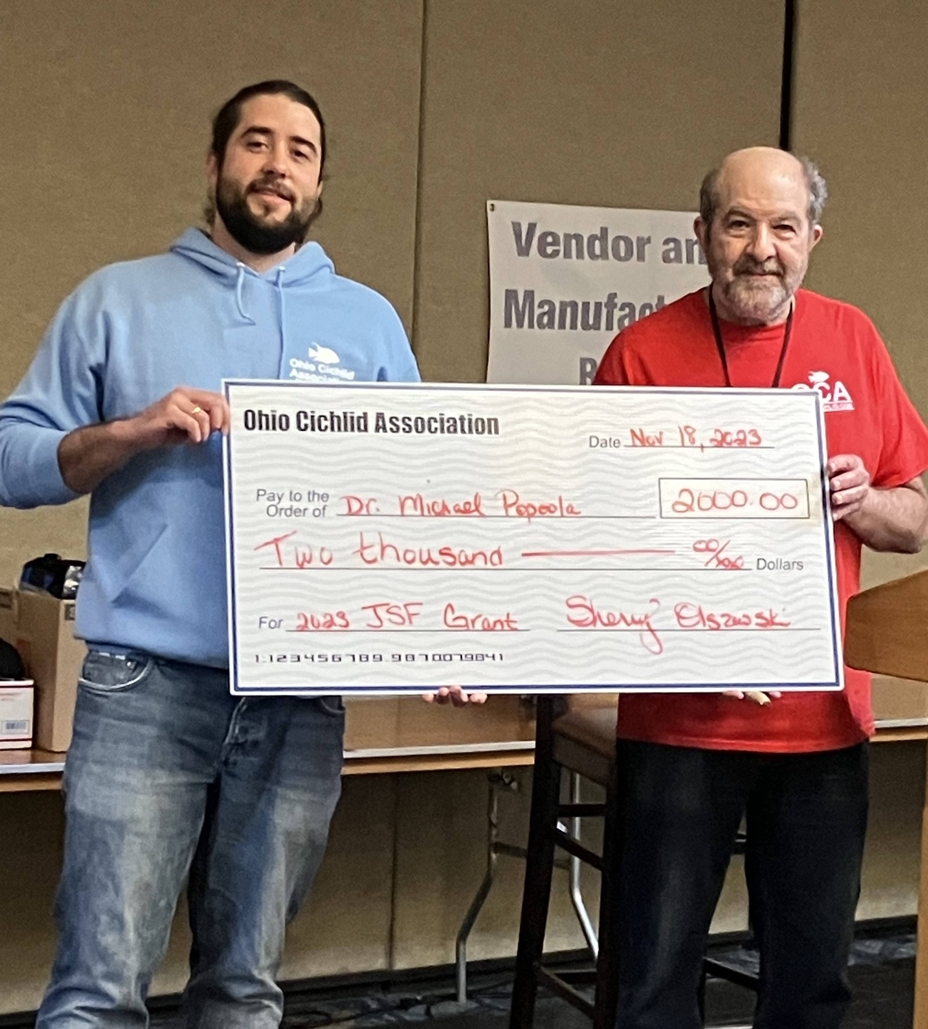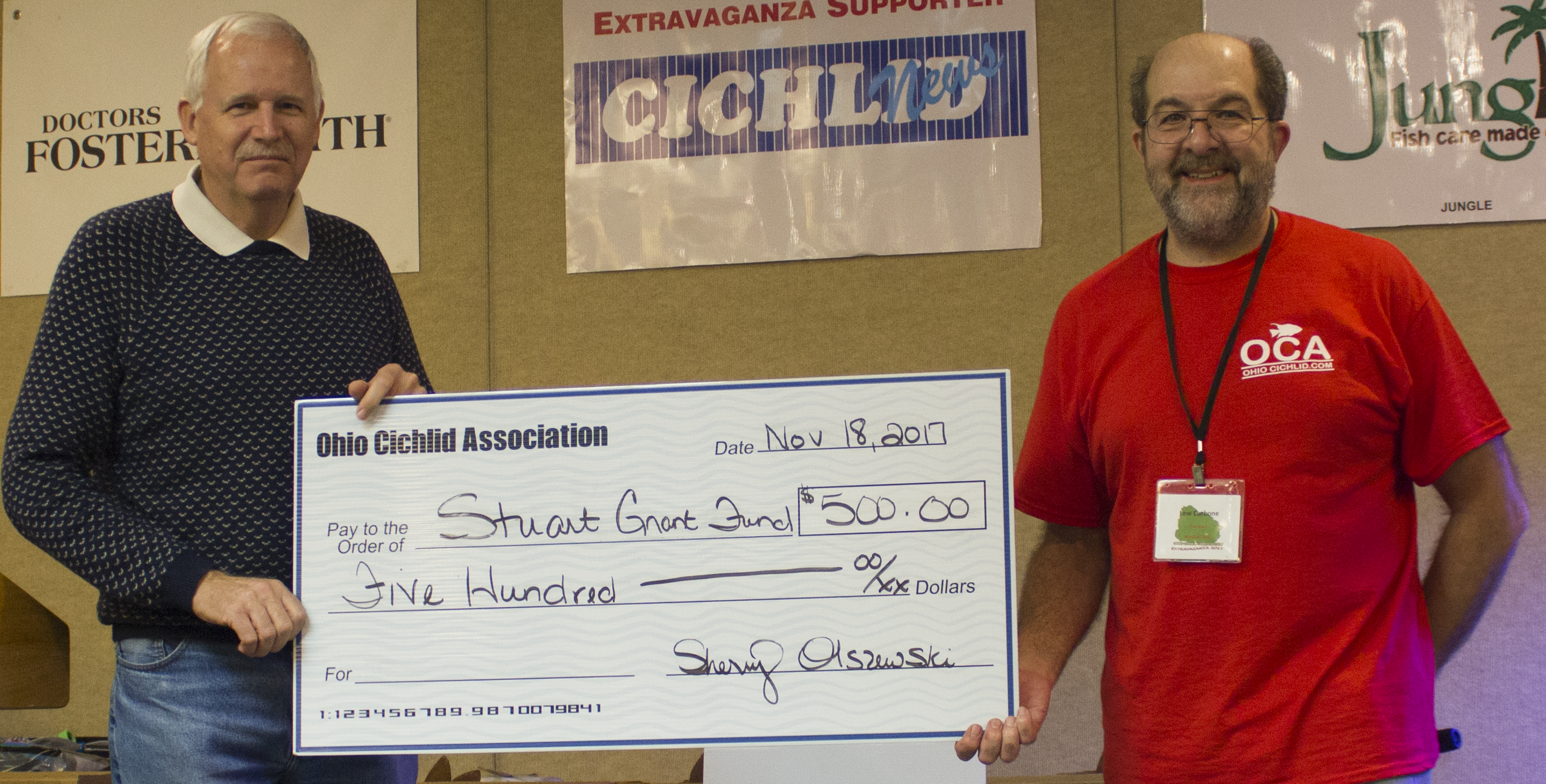 During Extravaganza 2012, The Ohio Cichlid Association donated $1500 to Penn State University Professer Jay Stauffer. Dr. Stauffer is heading a project to videograph an